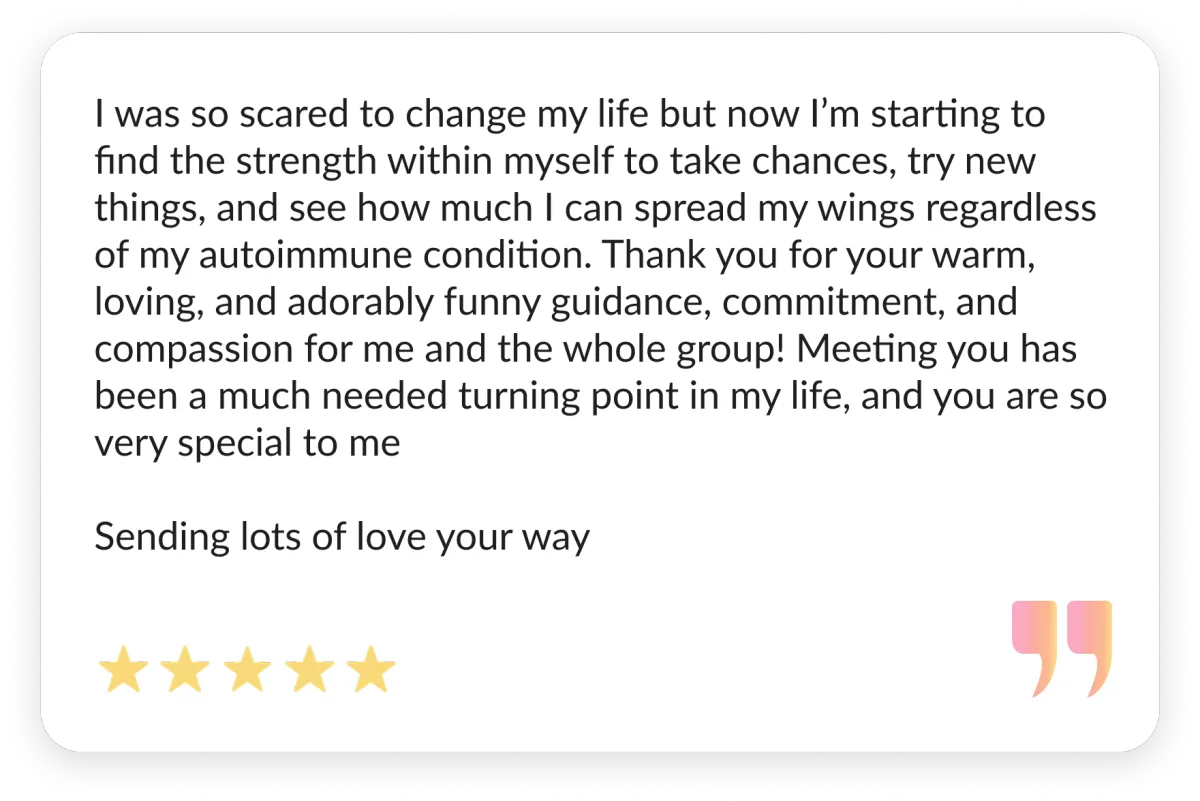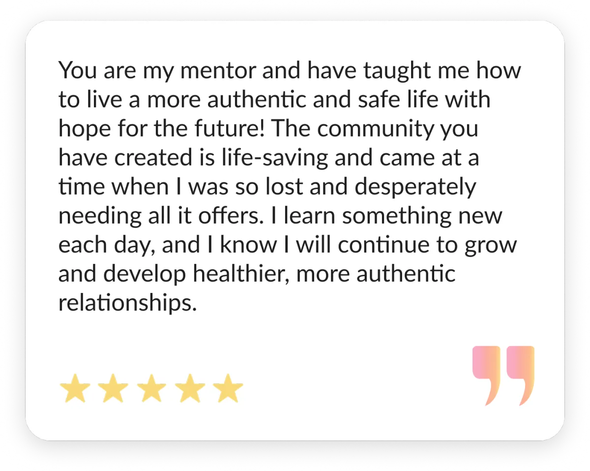 You’ll be surrounded by people who truly get it, so that you can heal without judgment, celebrate your progress without shame, and build deep, authentic connections along the way.