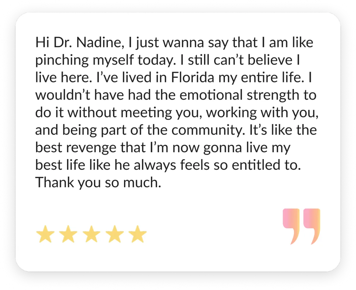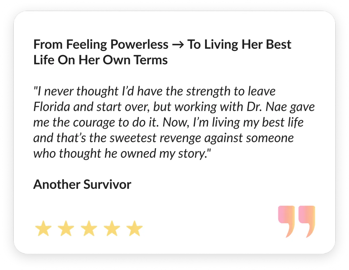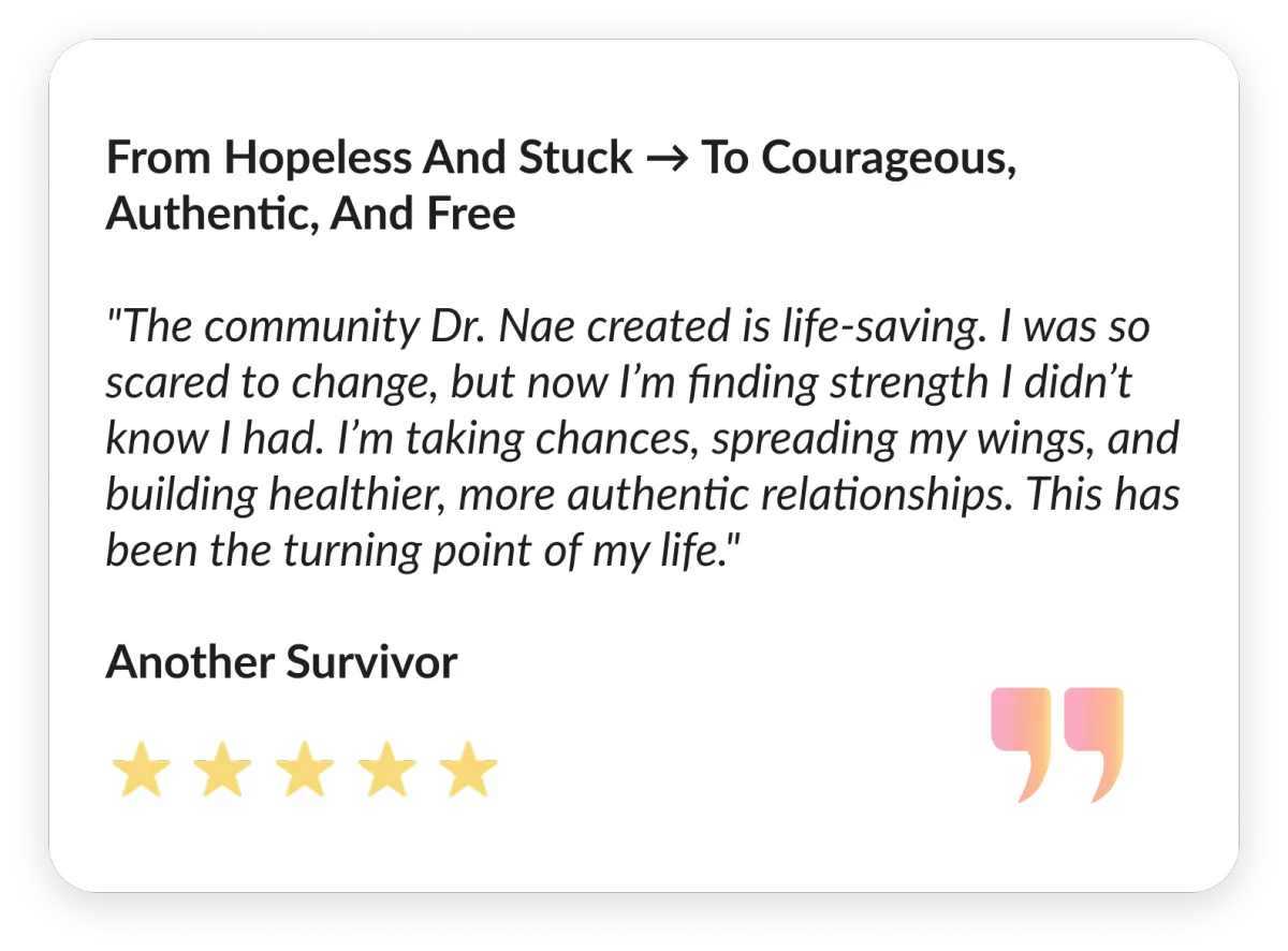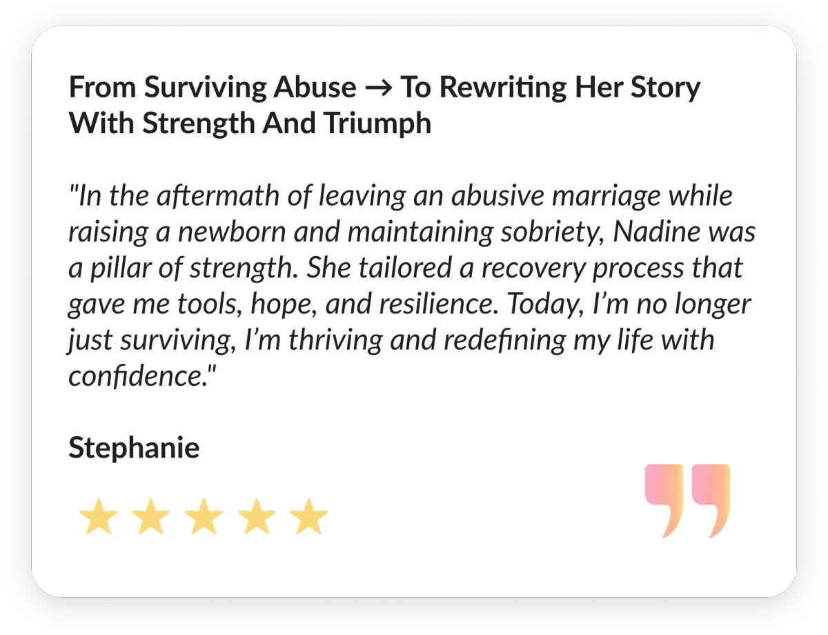 You’ll see what’s possible through someone who’s lived it, so that you can stop doubting your own healing journey and start believing in your ability to create a life that feels free, safe, and yours again.