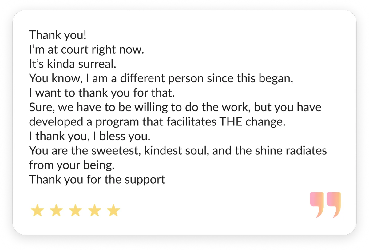 You’ll move at your own pace without overwhelm, so that healing fits into your life without pressure, and you can truly integrate the lessons into lasting change, not just temporary insight.