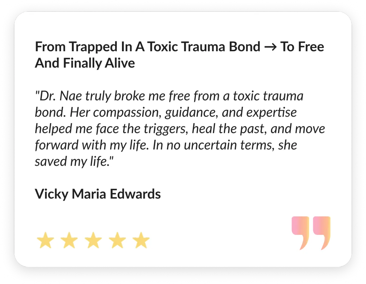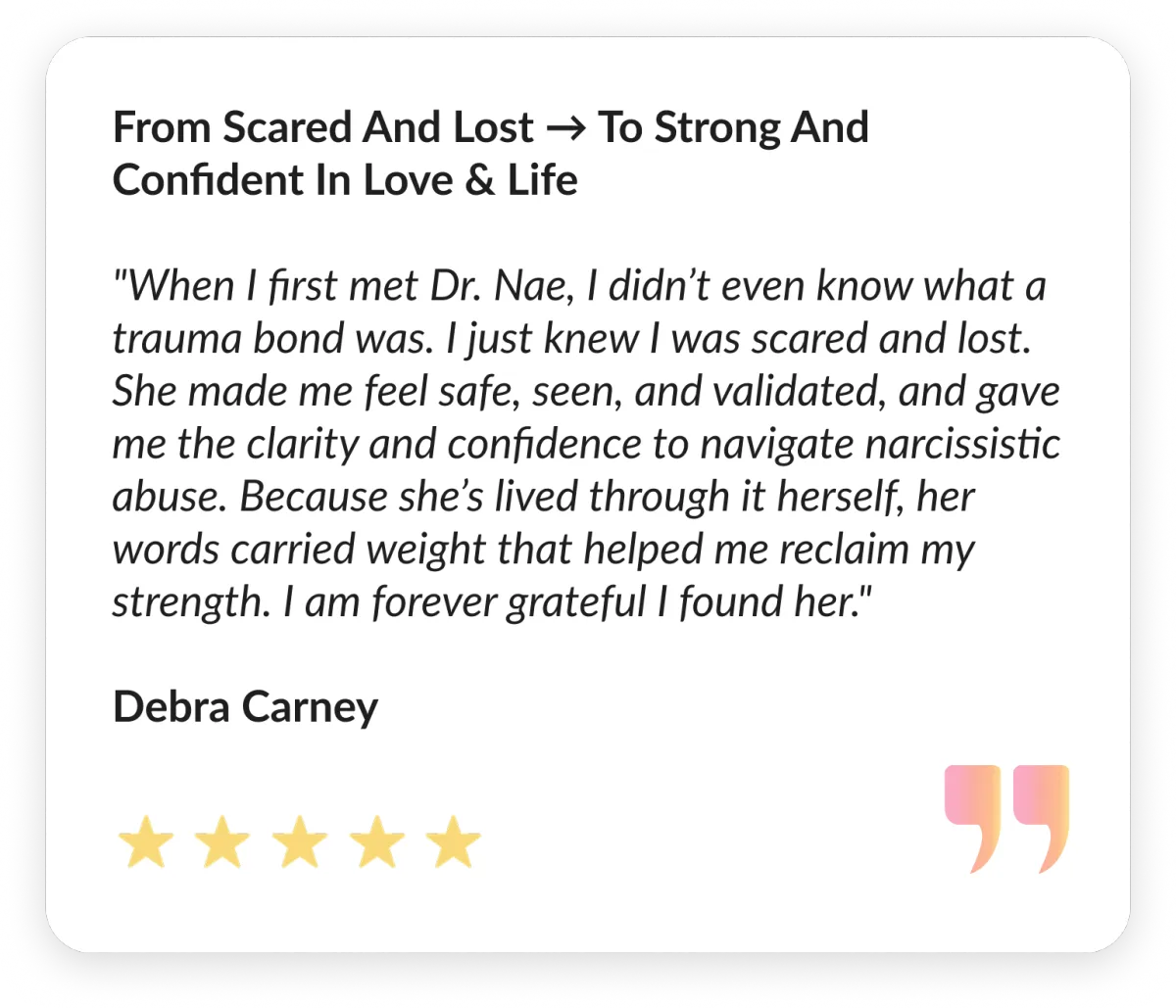 Expert-guided sessions where Dr. Nae blends somatic psychology with lived experience to guide you through the complex layers of trauma recovery.